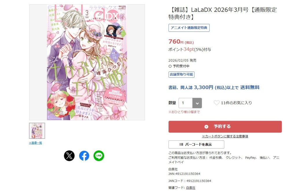 2・アニメイトオンラインLaLaDX3月号購入特典