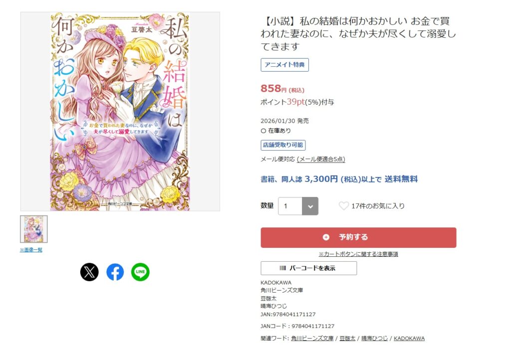 アニメイトオンラインでは、1月30日発売予定の小説にも特典が付きます。